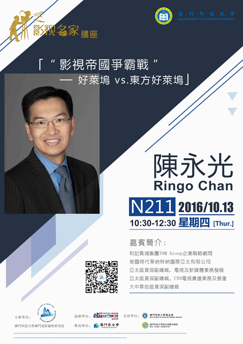 澳門科技大學澳門電影藝術研究院「影視名家」講座講座簡介日期:2016年11月10日(星期四)時間:上午10:30–12:30地點:澳門科技大學D座禮堂講題:編劇實戰要訣主講嘉賓:陳文強(香港影視編劇)...